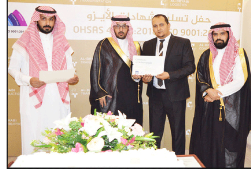 iso 9001 + iso 45001 حفل تسليم شهادة الجودة العالمية لمجموعة الذيابي للنقليات عام