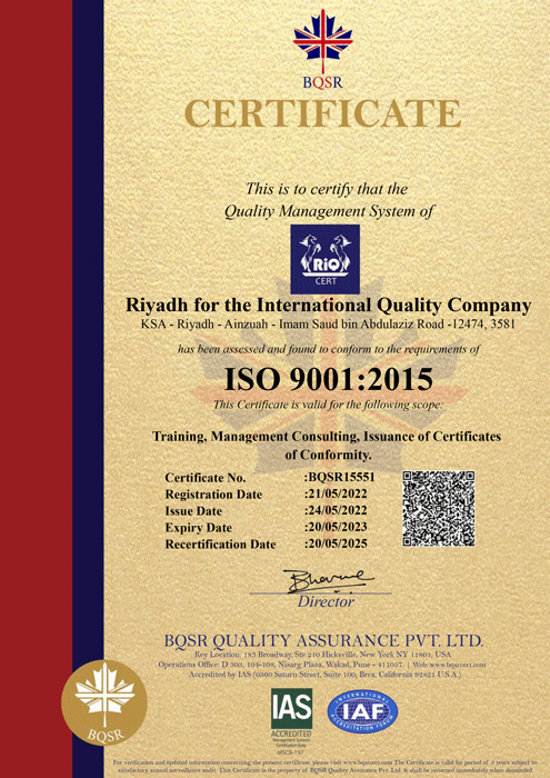 - حاصلين على شهادة الجودة العالمية لنظام ادارة الجودة ISO 9001 -2015