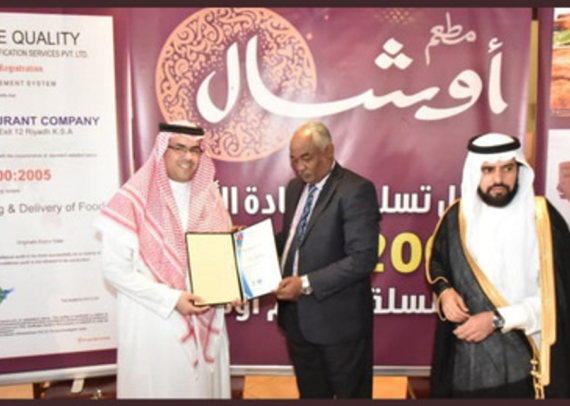 ISO تسليم شهادة الجودة العالمية لسلامة الغذاء 22000 لمطاعم أوشال عام 2020