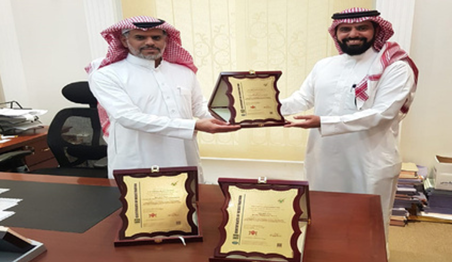 الأستاذ منصور البراك يتسلم شهادة iso45001 و iso14001 لشركة دار البناء للمقاولات عام2020