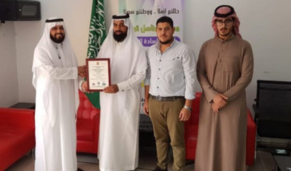 الأستاذ منصور البراك يتسلم شهادة iso45001 و iso14001 لشركة دار البناء للمقاولات عام2020