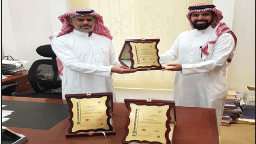 الأستاذ منصور البراك يتسلم شهادة ISO 45001 و ISO14001 لشركة دار البناء للمقاولات عام2020